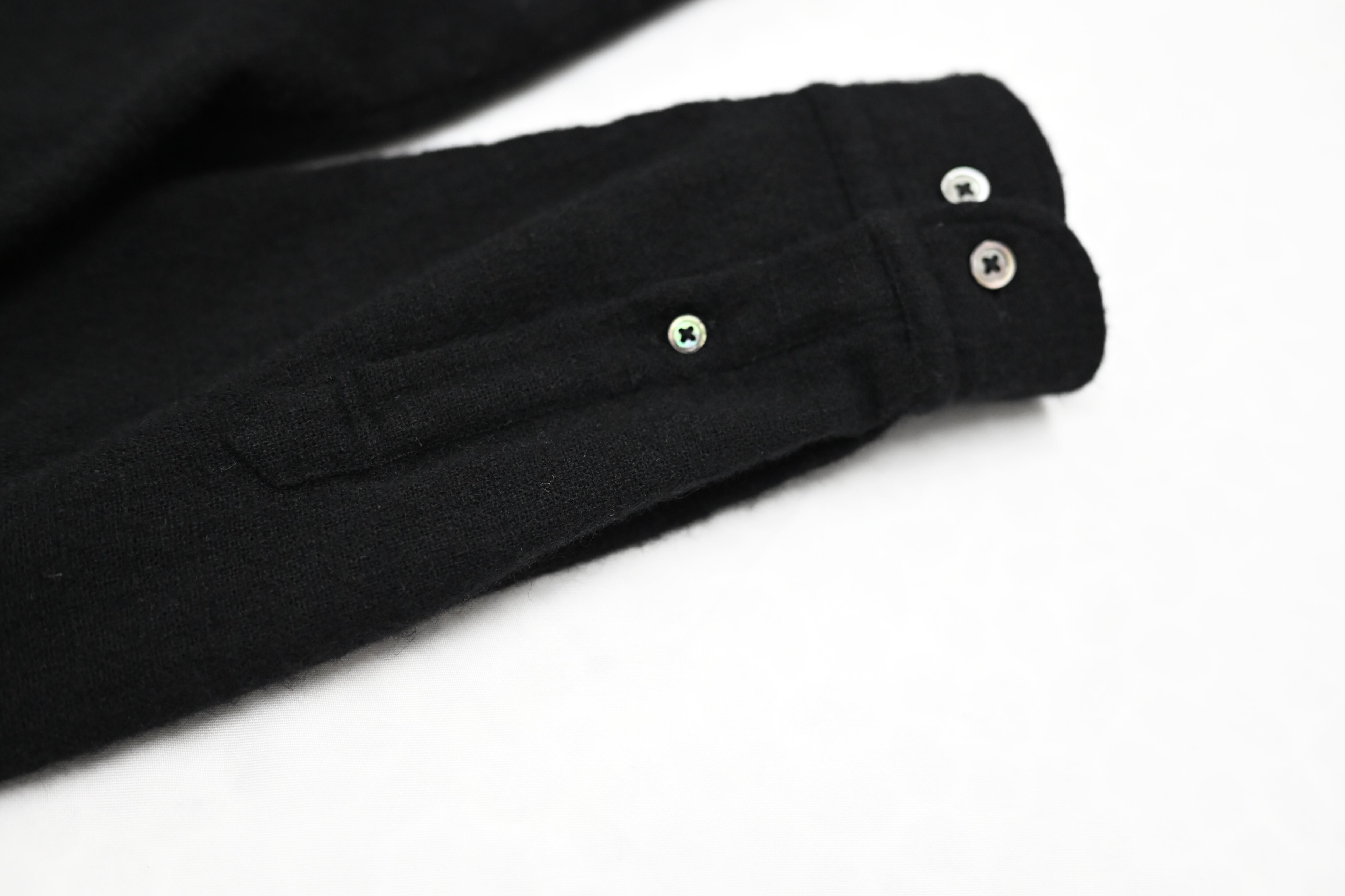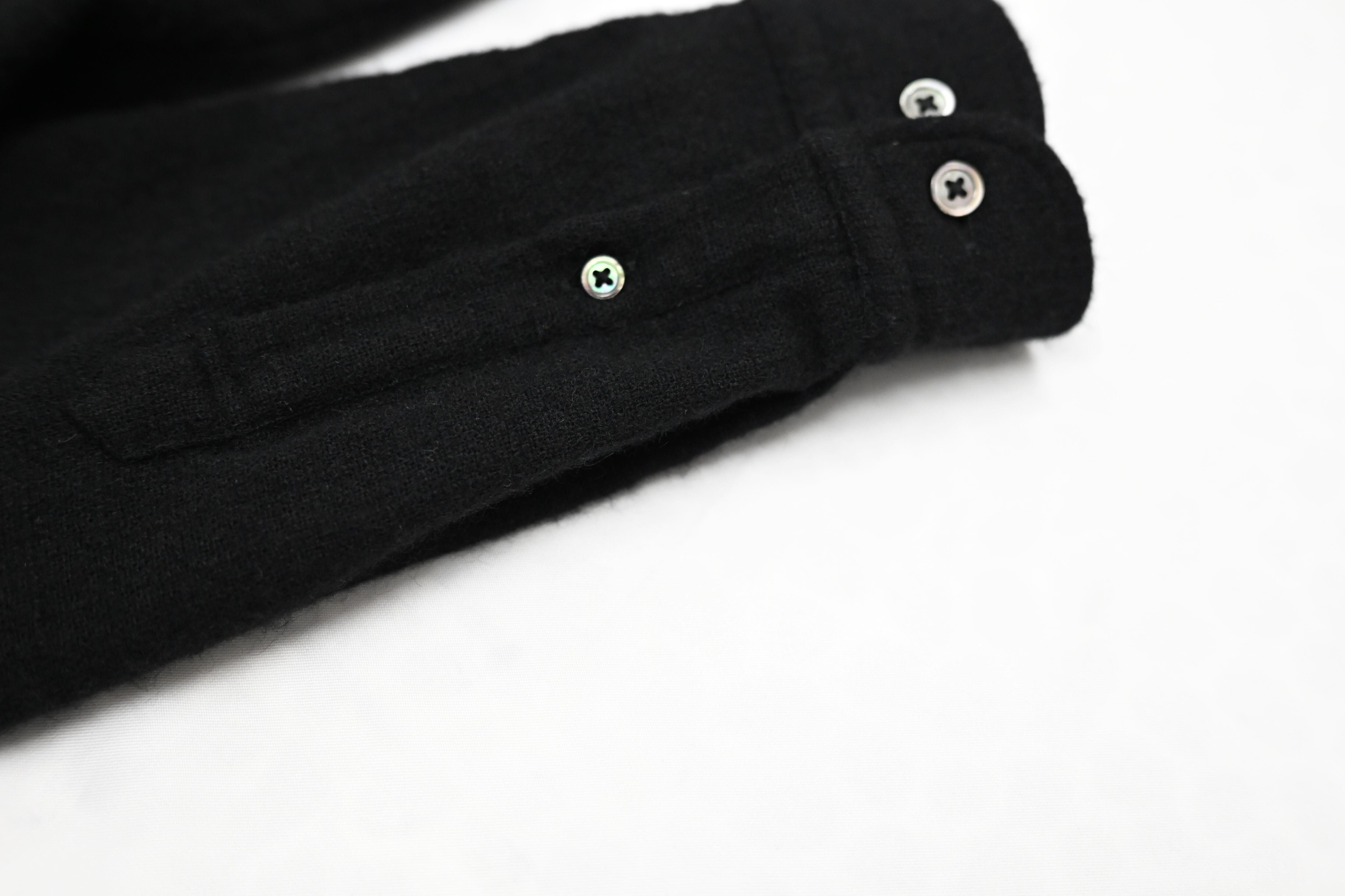 ボタン: 上品な光沢を持つ貝ボタンを使用。細部にまでこだわり、高級感をプラスしました。